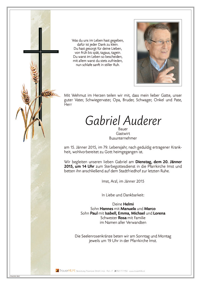 Gabriel war ein lieber Freund.,19.01.2015 11:21 - Franz und Rosmarie Auer Stanz 90