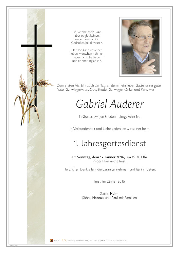 Am Heimgang Eures lieben Gabriel möchten wir Euch allen unser aufrichtiges Beileid aussprechen!