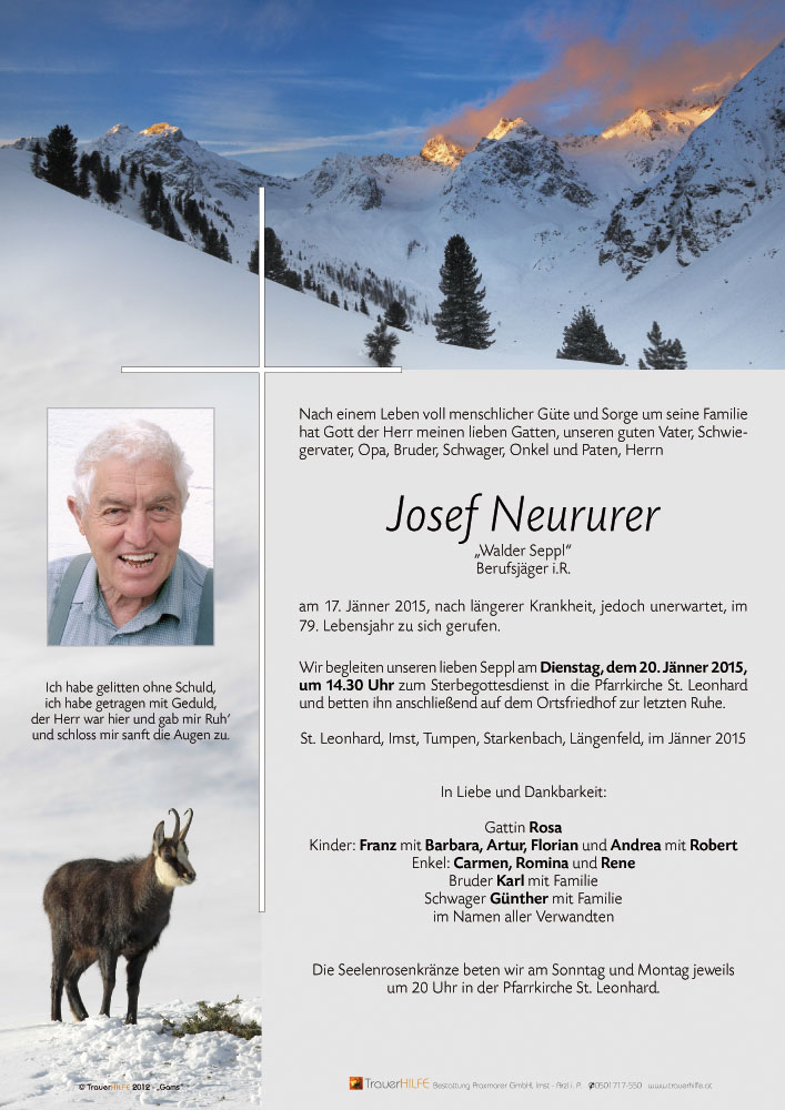 Liebe Andrea, lieber Florian, lieber Arthur, liebe Rosa, wir möchten euch unsere Anteilnahme am Tod von Seppl aussprechen. Er hat alles mit Geduld und tapferkeit ertragen.... und war immer gut gelaunt und dankbar. Habe wirklich Hochachtung vor ihm. Möge er in Frieden ruhen. Katja, Leonhard und Florian