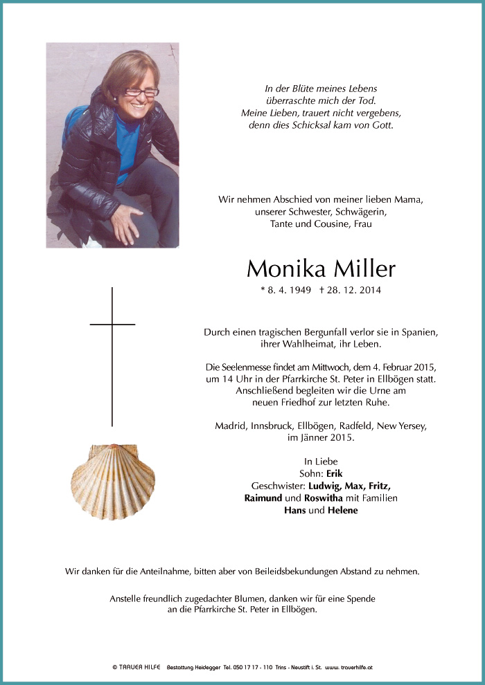 Bestattung wurde durchgeführt von: Karl Neurauter Karl Neurauter Bestattung Heidegger Brennerstraße 69 6150 - Steinach am Brenner Tel.: 05275 5211 zum Bestatter