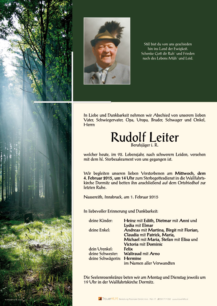Friedhof Dormitz - Nassereith, † 01.02.2015 (91 Jahre)
