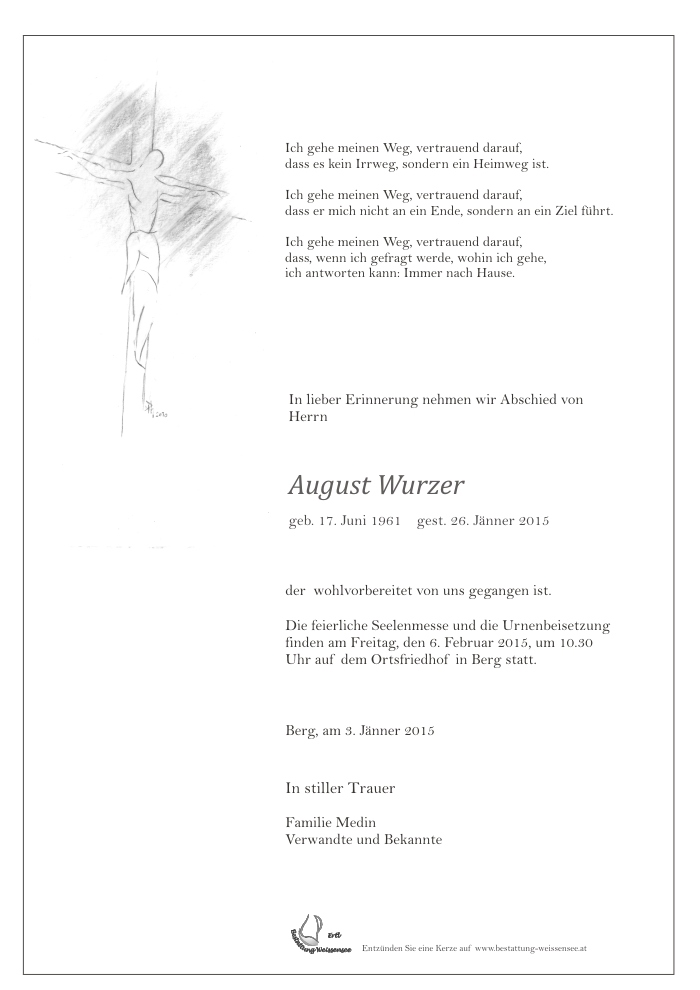 Bestattung wurde durchgeführt von: Markus Ertl Bestattung Weissensee Neusach 26 9762 - Weißensee Tel.: 04713 22 29 zum Bestatter