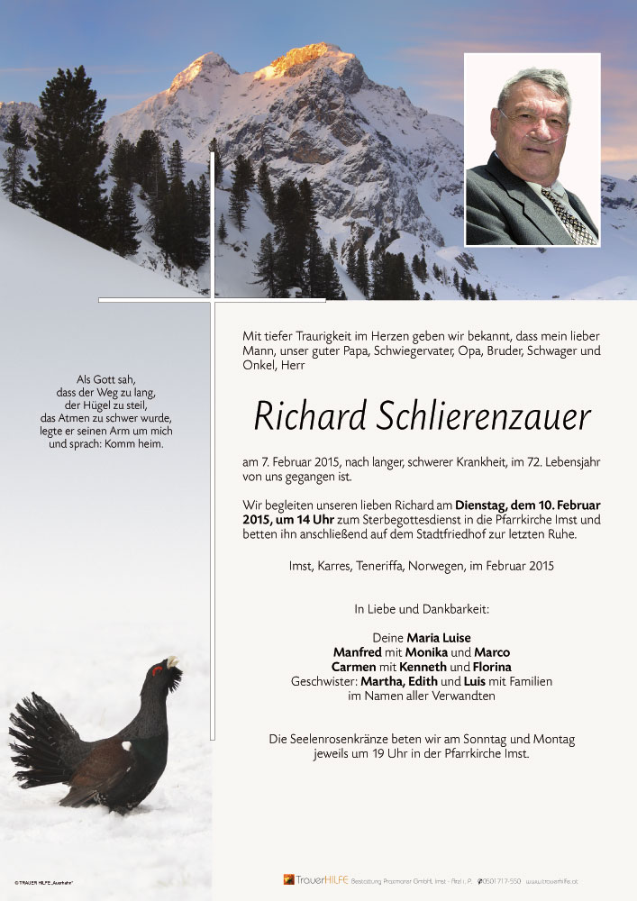 Neue Kerze für Richard Schlierenzauer entzünden.