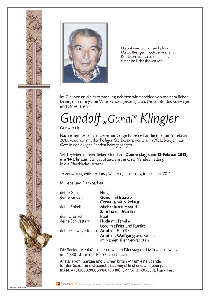 Wir entbieten unser aufrichtiges Beileid und bedanken uns herzlichst bei euch liebe Helga, Conny und Gundi Jun.,