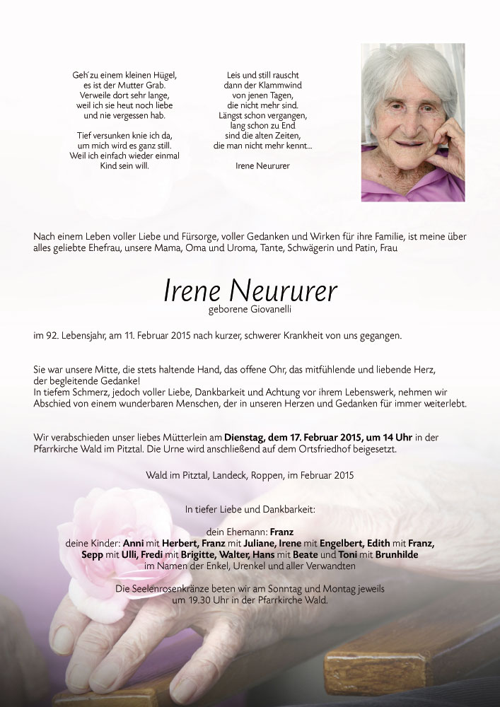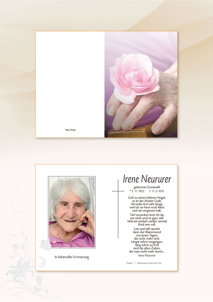 In Liebe und Dankbarkeit deine Tochter Irene16.10.2015 11:04 - Irene Raggl