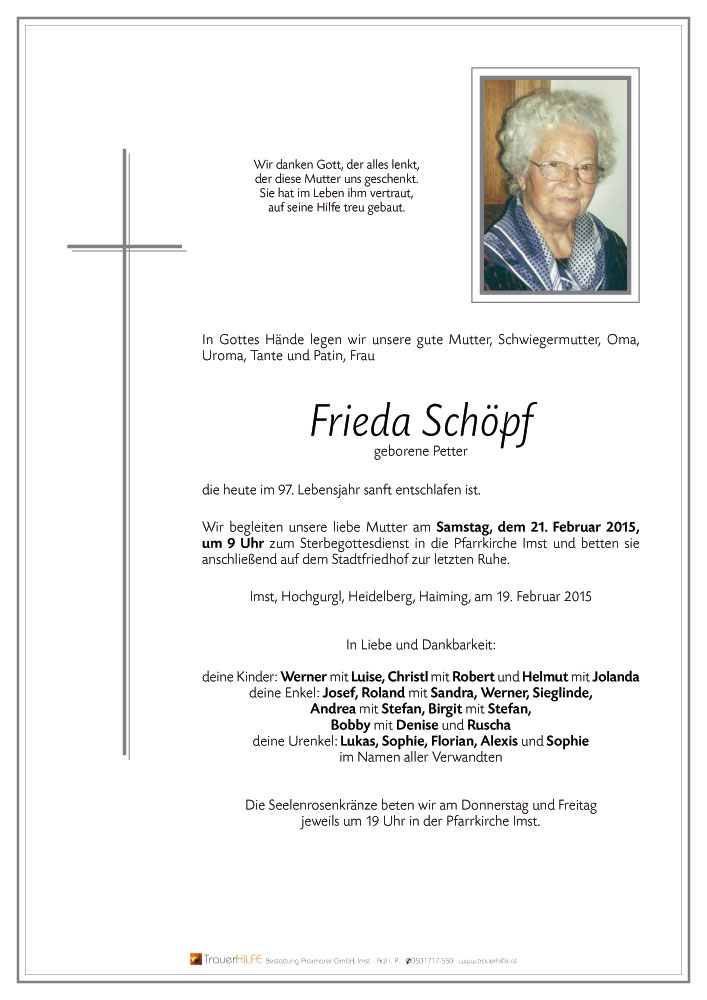 Zum Heimgang eurer lieben Mama und Oma unser aufrichtiges Beileid.