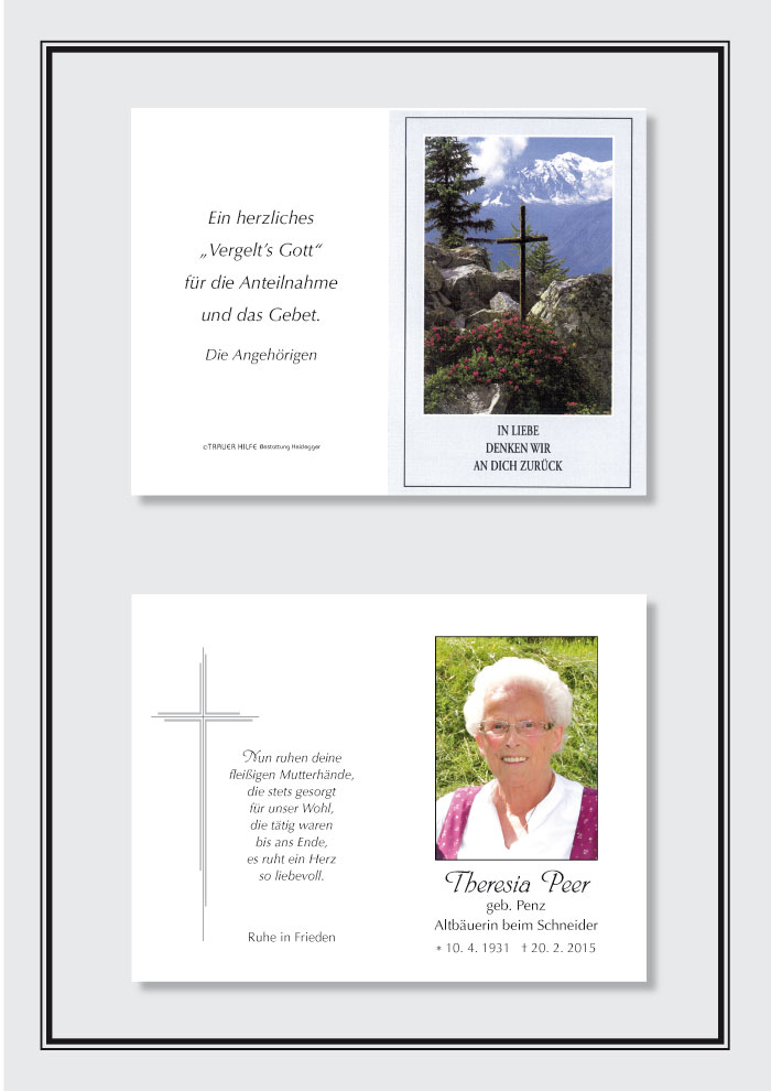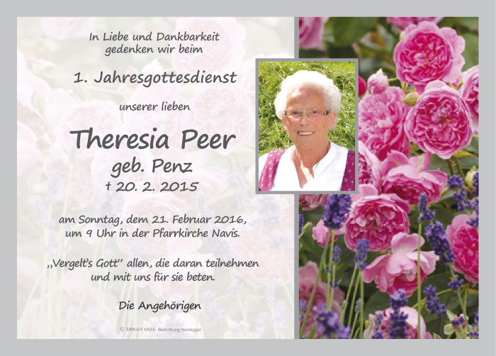 Neue Kerze für Theresia Peer entzünden.