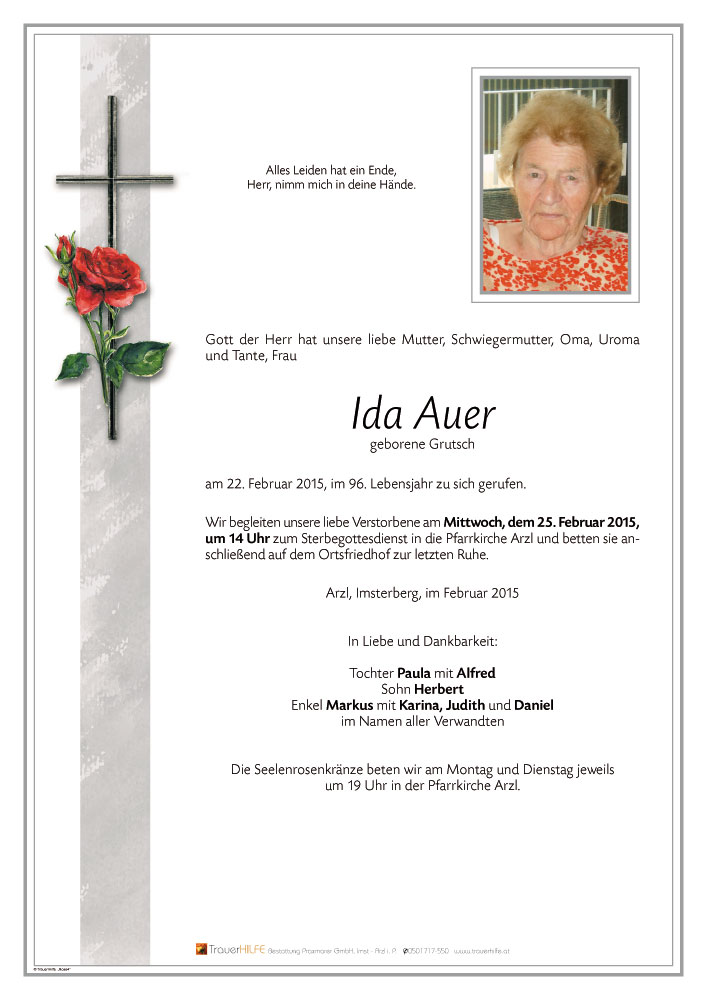 Friedhof Arzl im Pitztal, † 22.02.2015 (95 Jahre)
