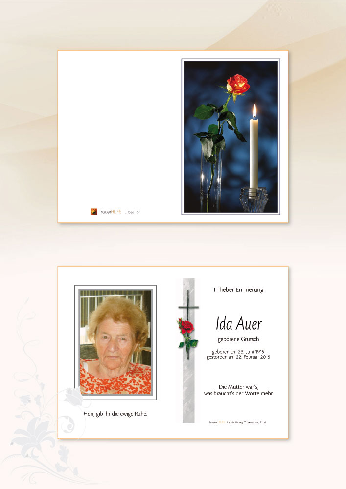 • Aufrichtige Anteilnahme am Tod Eurer lieben Ida entbieten Euch Edith und Reinhard mit Familie