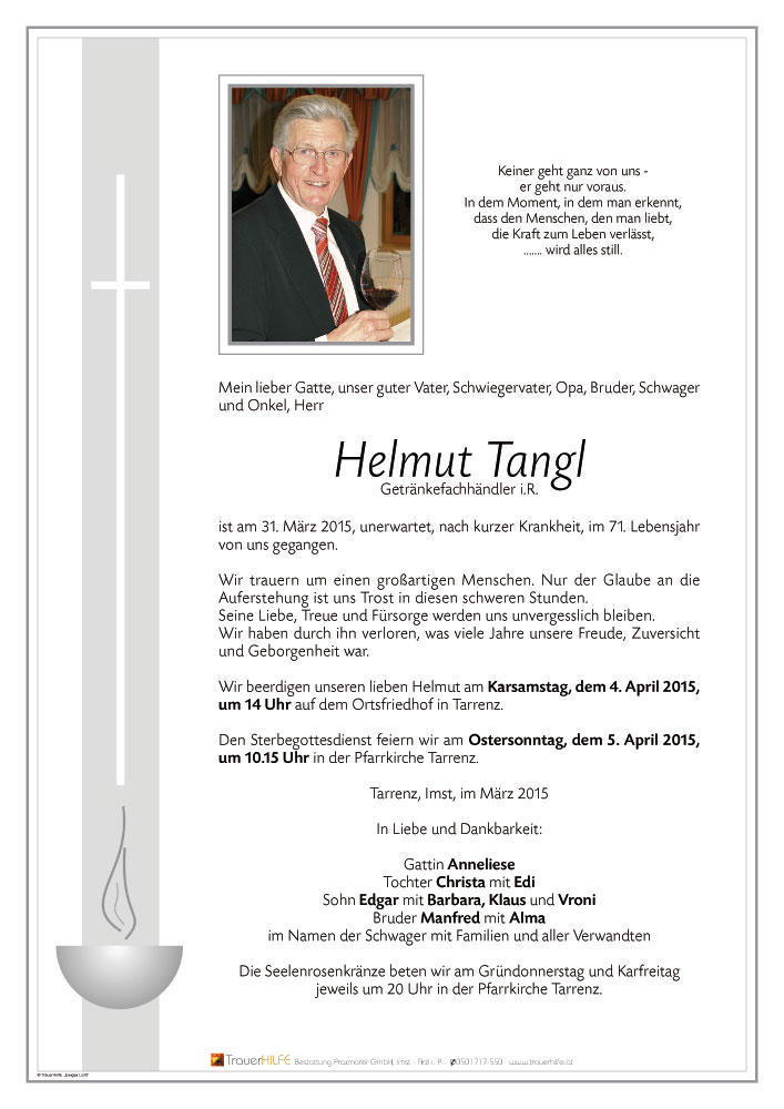 Neue Kerze für Helmut Tangl entzünden.