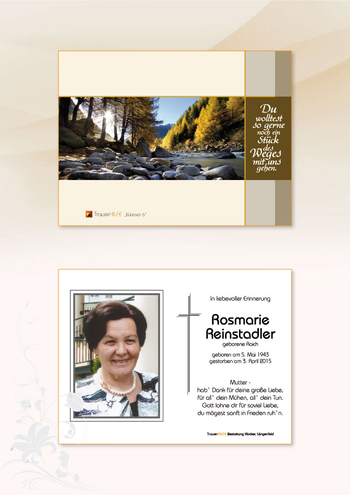 Rosmarie war ein lebensbejahender und lustiger Mensch, der mit viel Sorgfalt und Umsicht die täglichen Arbeiten gemeistert hat. Sie nahm sich immer die nötige Zeit um die Freundschaften, die ihr wichtig waren, zu leben.