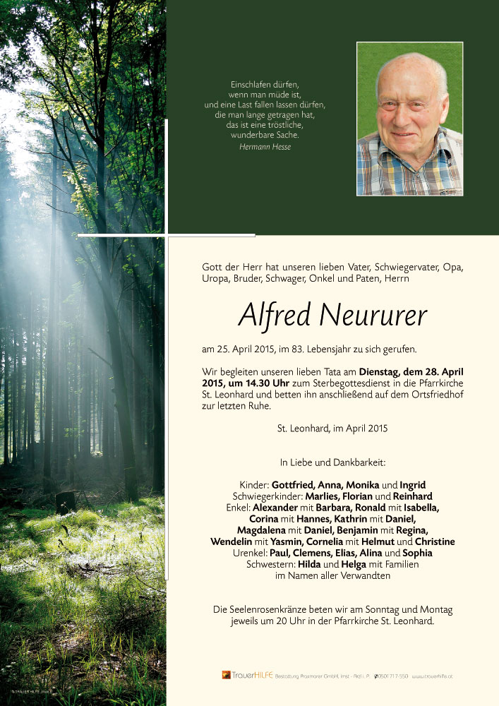 Euer lieber Alfred hat die Mühen des Lebens überwunden . Möge er in Frieden ruhen.