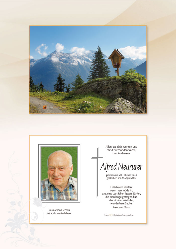 Bestattung wurde durchgeführt von: Daniel Klocker Bestattung Praxmarer GmbH Thomas Walch Str. 4 6460 - Imst Tel.: 05412 64250 zum Bestatter