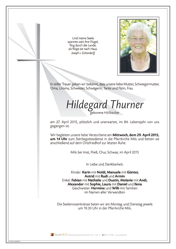 Friedhof Mils bei Imst, † 27.04.2015 (83 Jahre)