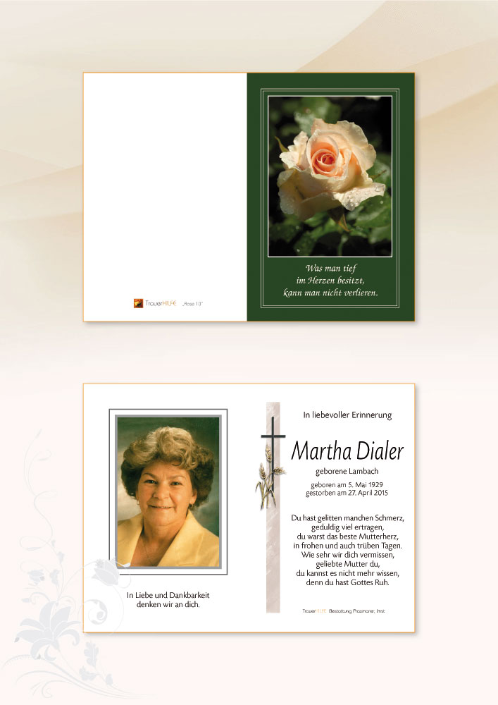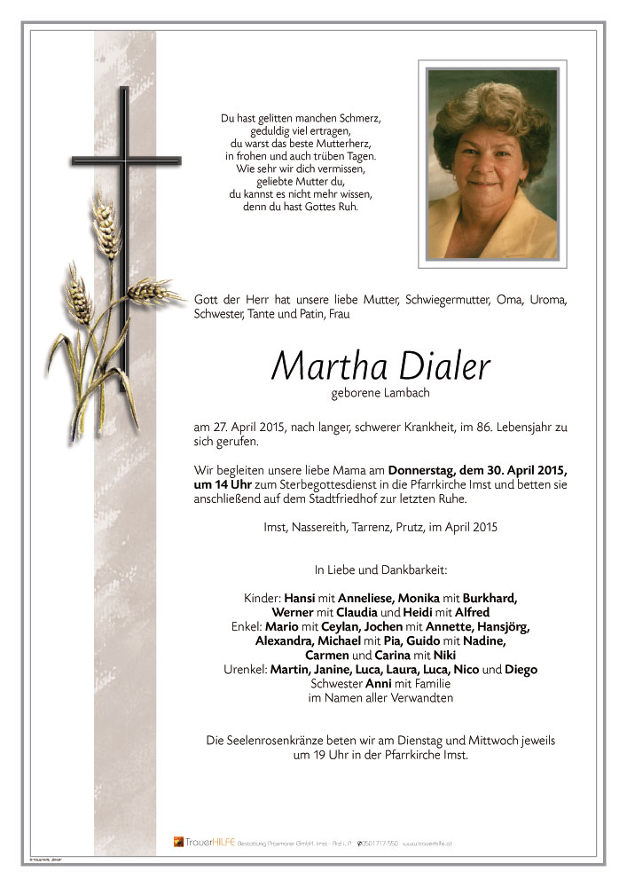 Herzliche Anteilnahme am Ableben eurer lieben Martha
