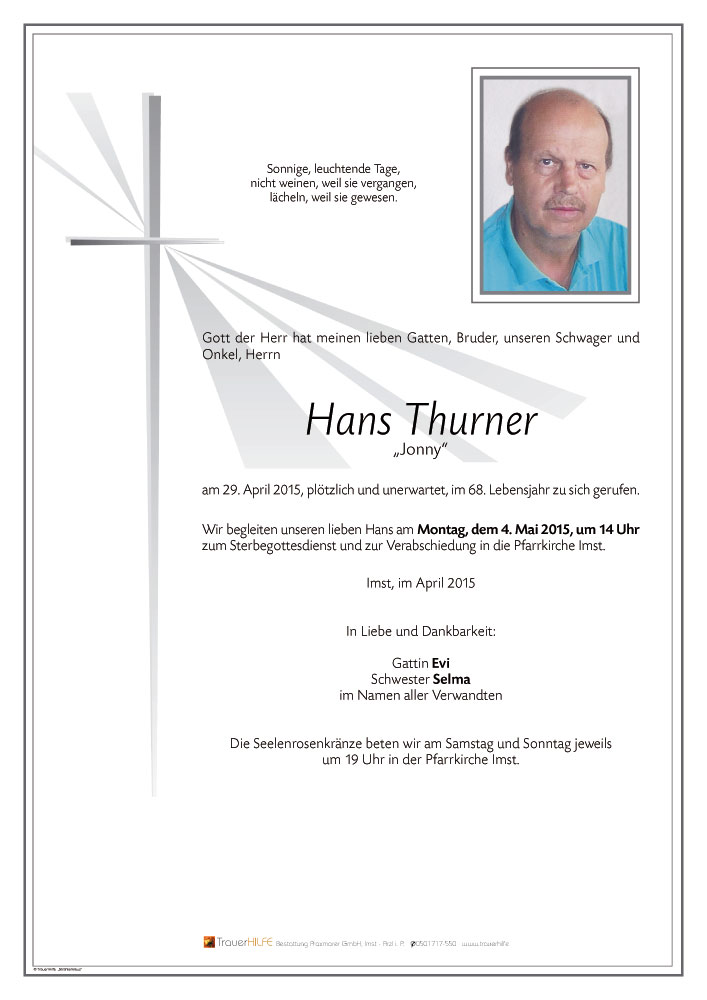 Neue Kerze für Hans Thurner entzünden.