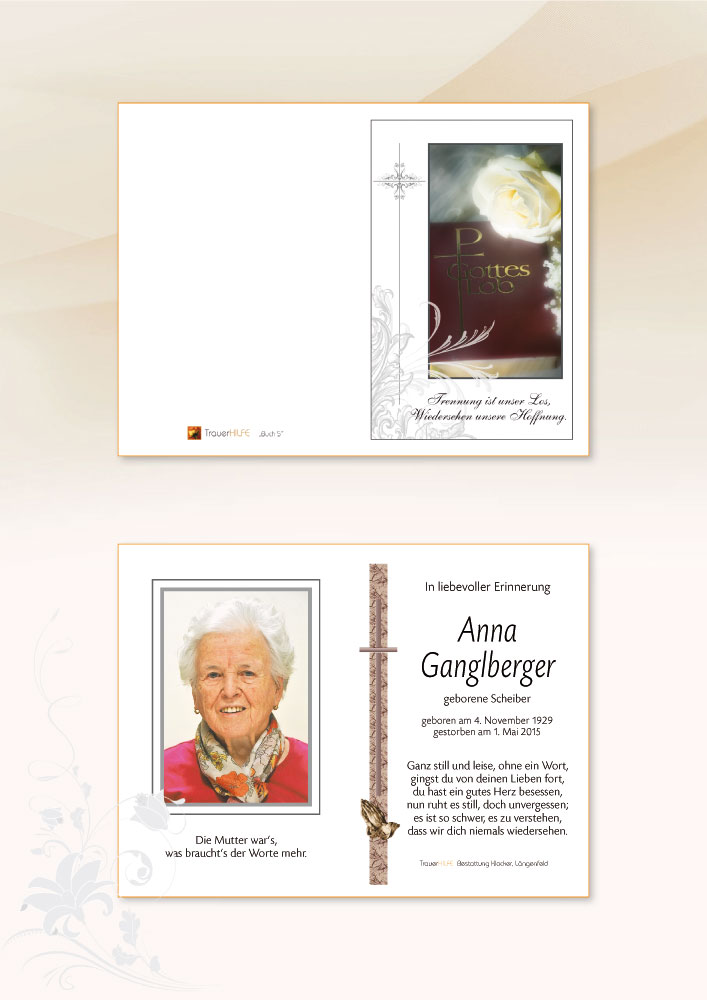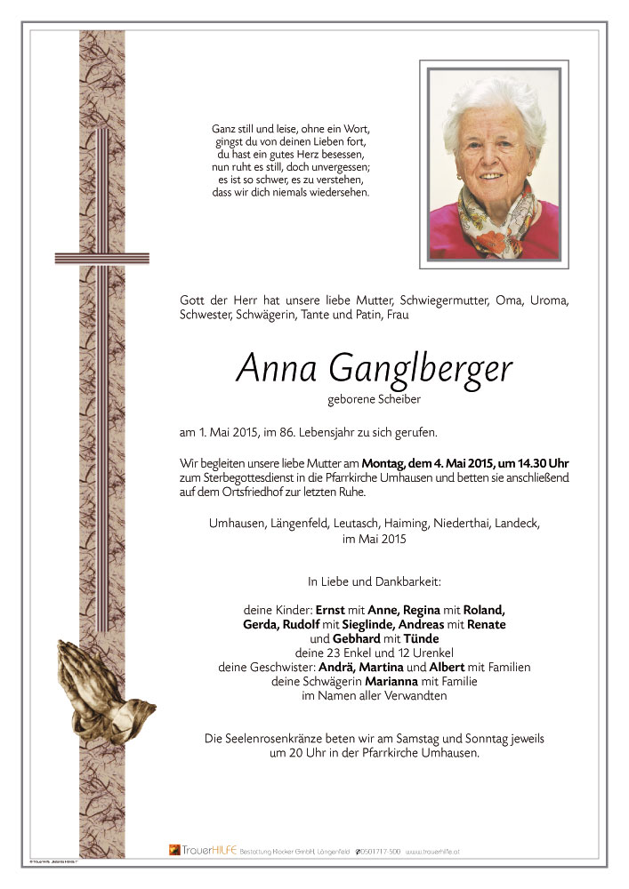 Anna hat sechs Kindern durch ihre Geburt das Leben geschenkt. In ihrem Sterben hat sie jetzt selber eine neue Geburt in ein neues, ewiges Leben erfahren dürfen.