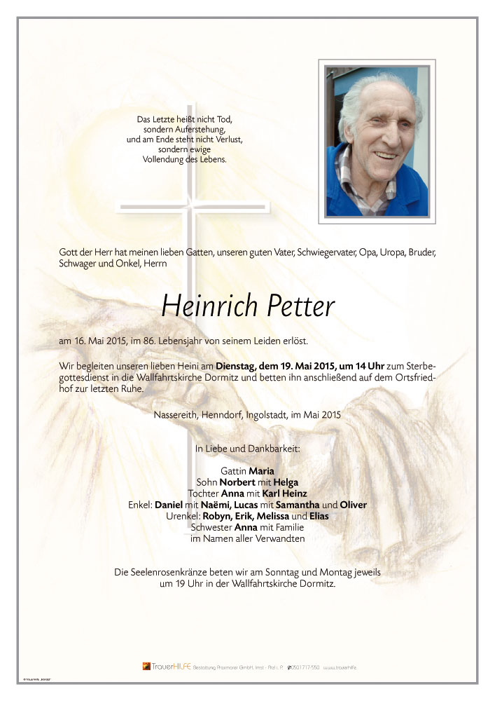 Neue Kerze für Heinrich Petter entzünden.