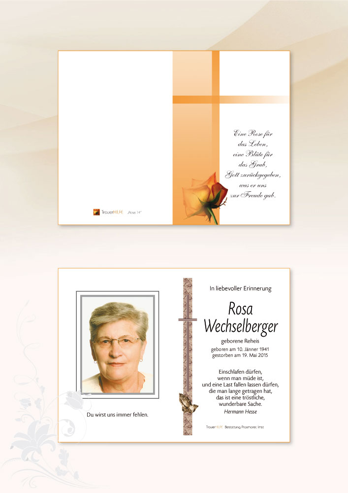 Euch aber, die ihr mit eurem Schmerz und eurer Trauer zurückbleibt wünschen wir, dass euch die Hoffnung auf ein Wiedersehen in einem neuen und ewigen Leben Trost gibt.