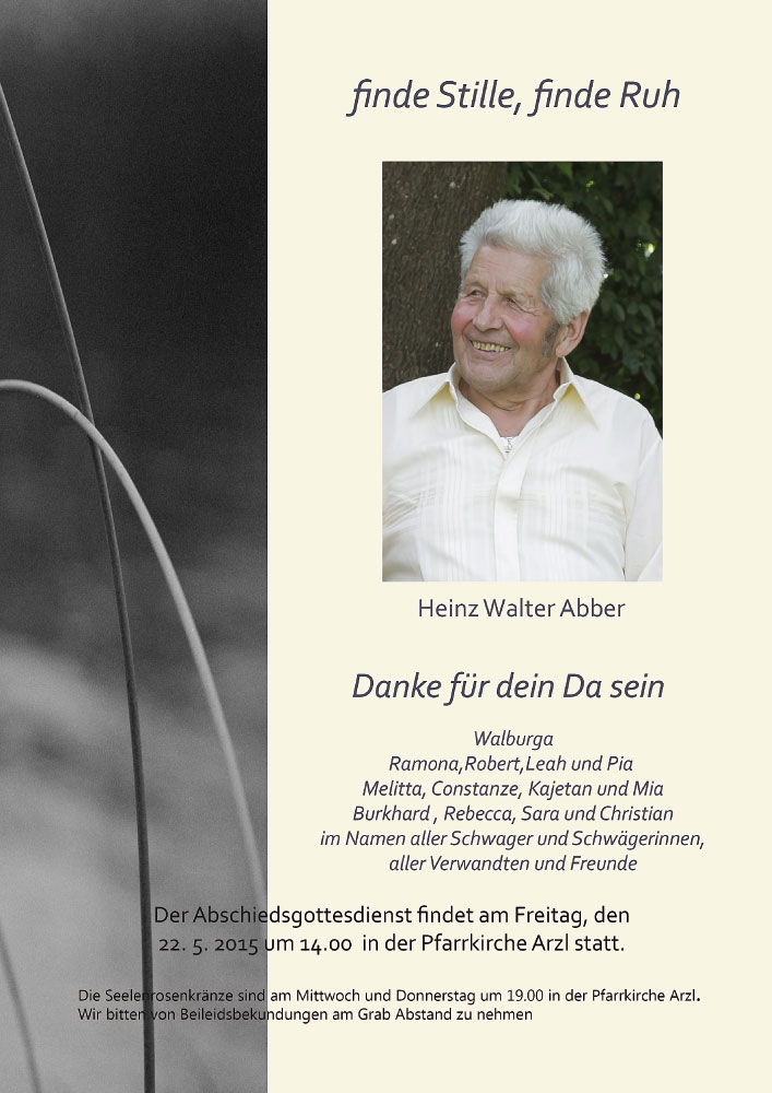 Tief betroffen über den Verlust eures lieben Walter, Papa und Opa, möchte ich euch mein herzliches Beileid ausdrücken!