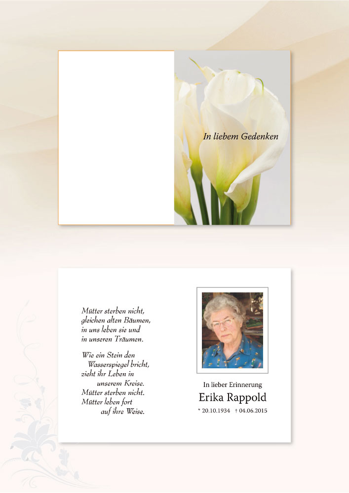 Eine Mutter liebt ohne viele Worte - eine Mutter hilft ohne viele Worte eine Mutter versteht ohne viele Worte- eine Mutter geht ohne viele Worte .... ....und hinterlässt eine Leere, die in Worte keiner ausdrücken vermag.