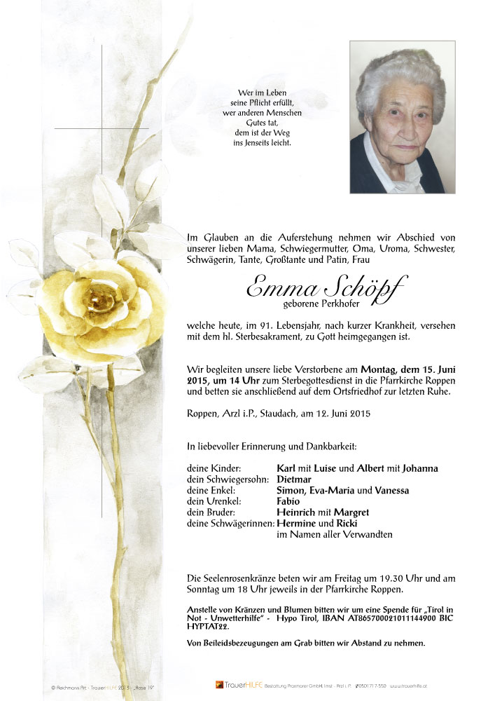 So wie Emmas Weg zu ihrer Hoamat wor, so war wohl auch Emmas Lebensweg bis sie in die ewige Heimat gehen durfte - lang, kurvenreich, mühsam und anstrengend. Aber dann, am Ziel angekommen, wurde und wird sie jetzt, nach diesem letzten kräftezehrenden Wegstück mit Ruhe, Freiheit, Sorglosigkeit, Weitblick und der besten Aussicht belohnt.