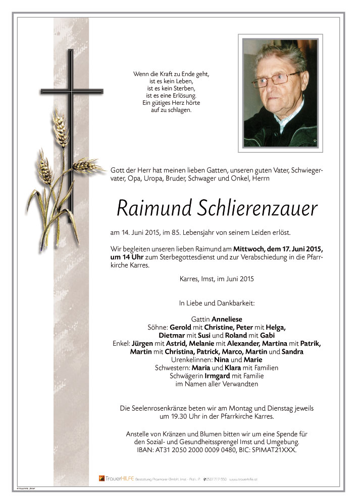 Herzliche Anteilnahme zum Heimgang euren lieben Vaters Raimund und viel Kraft in den traurigen Stunden des Abschiednehmens !