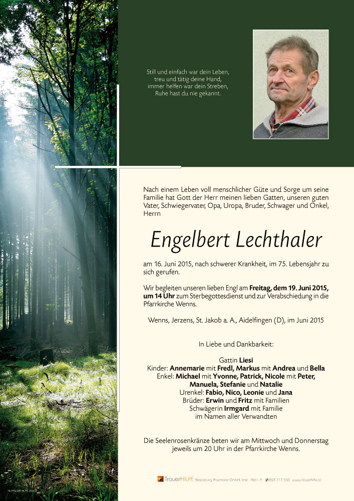 Neue Kerze für Engelbert Lechthaler entzünden.