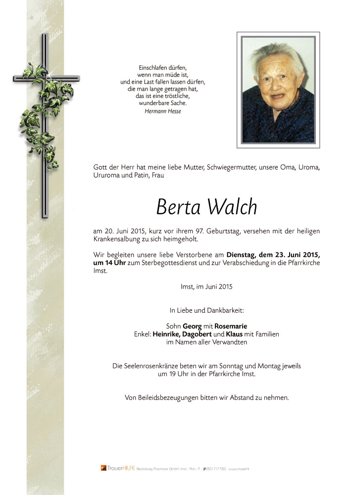 Friedhof Imst, † 20.06.2015 (96 Jahre)