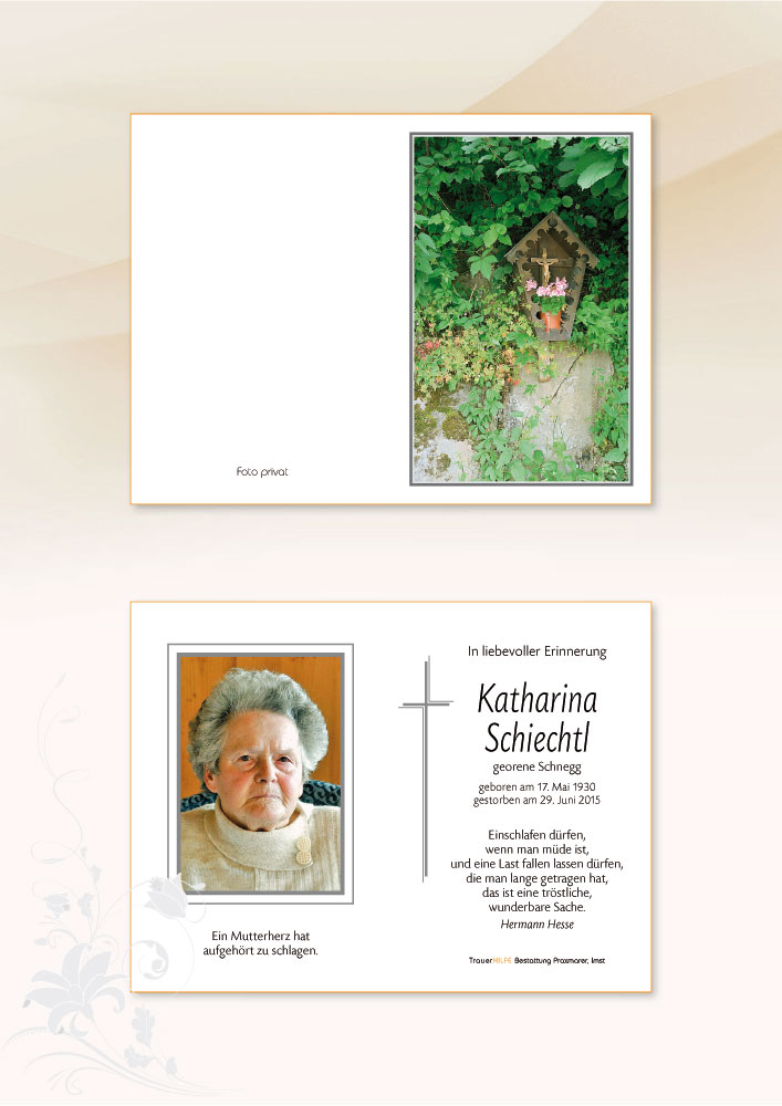 Unsere aufrichtige Anteilnahme am Heimgang eurer Mutter Katharina.