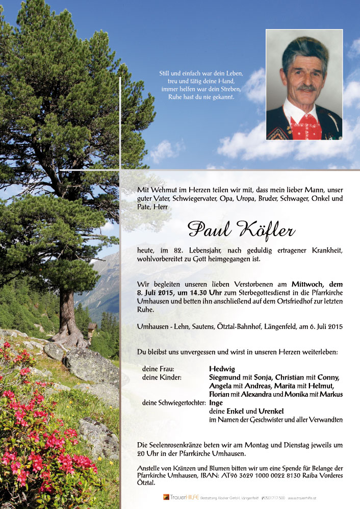 ... ein erfülltes Leben ist zu Ende gegangen. Mit dem Tod eures Papa Paul verliert man vieles, jedoch niemals die mit ihm verbrachte Zeit.