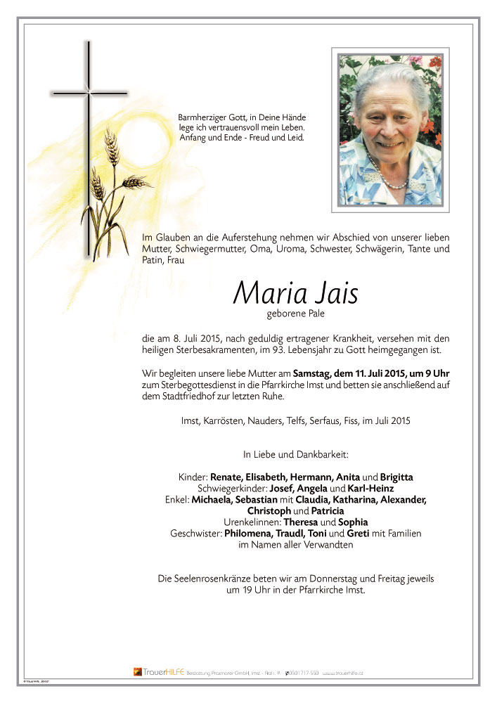 Am Heimgang Eurer lieben Mutter, Schwiegermutter, Oma, Uroma, Schwester, Schwägerin, Tante und Patin möchten wir Euch allen unser aufrichtiges Beileid aussprechen! Möge Euch der Herrgott viel Kraft schenken in dieser schweren Zeit!