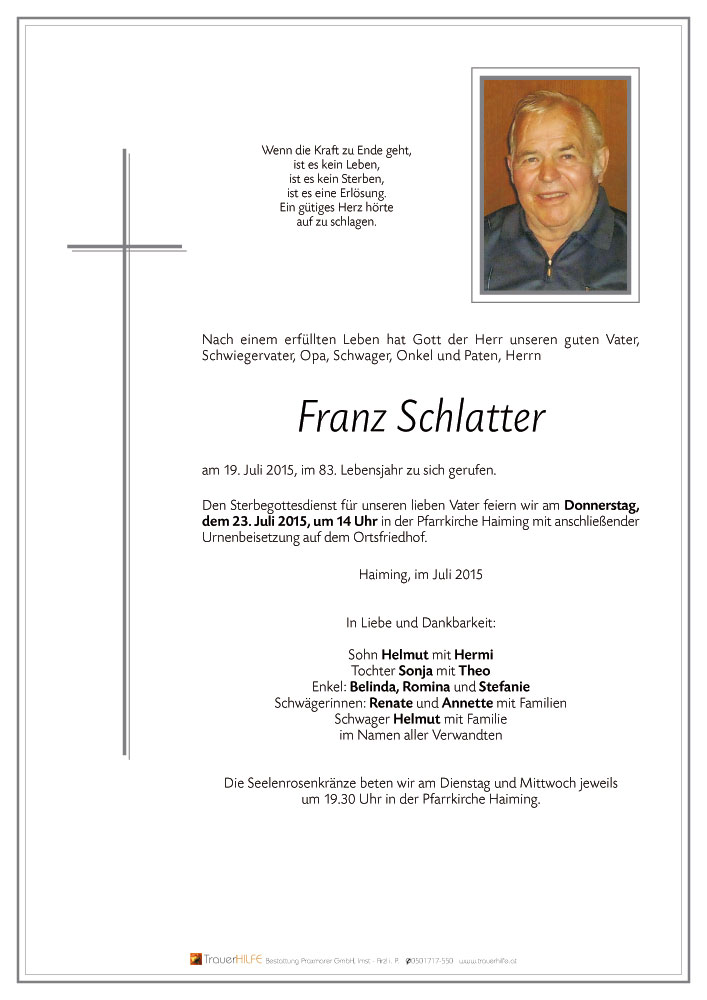 In tiefer Verbundenheit und in stillen Gedenken, das Team vom Wohn- und Pflegezentrum Haiming.21.07.2015 10:37 - Wohn- und Pflegezentrum Haiming