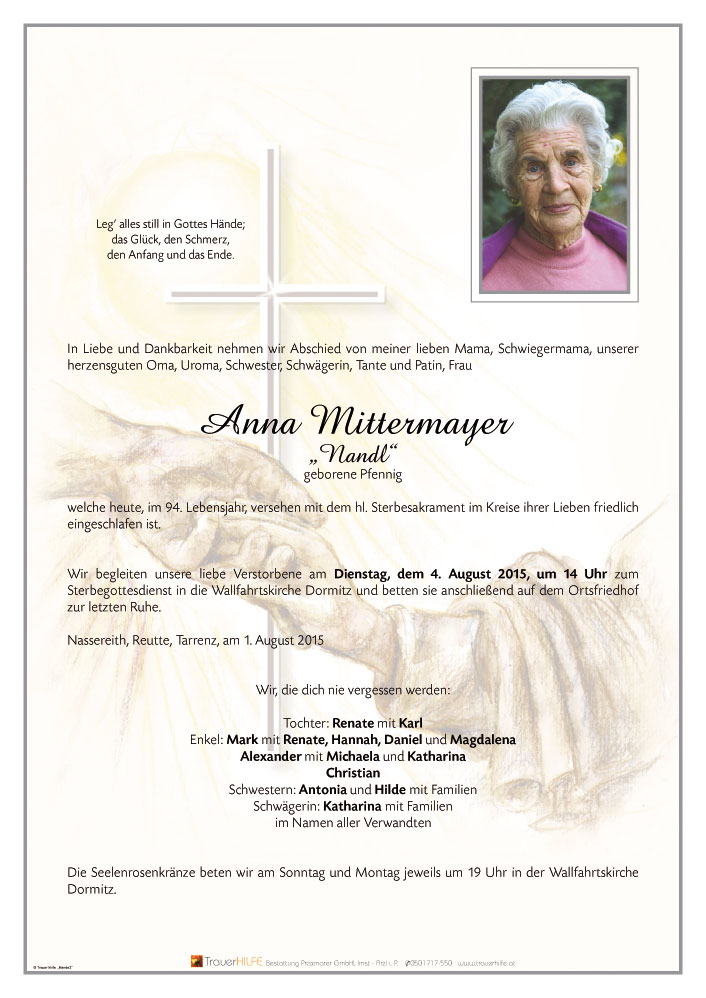 Friedhof Dormitz - Nassereith, † 01.08.2015 (93 Jahre)