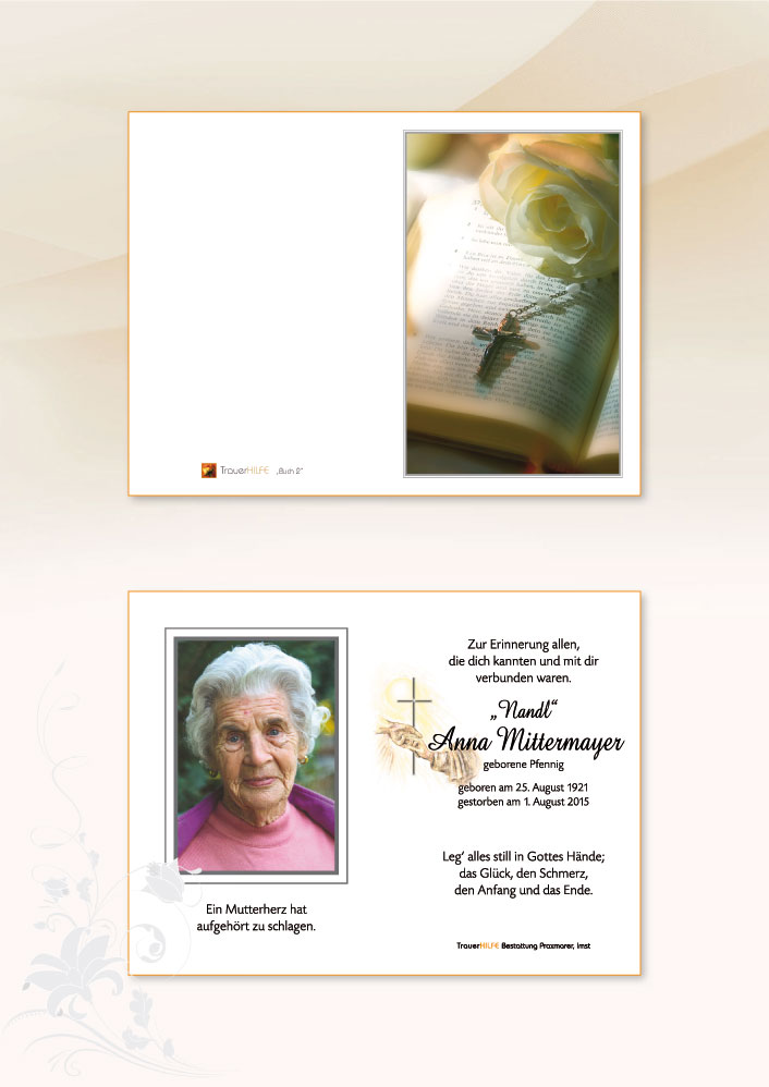 Bestattung wurde durchgeführt von: Daniel Klocker Bestattung Praxmarer GmbH Thomas Walch Str. 4 6460 - Imst Tel.: 05412 64250 zum Bestatter