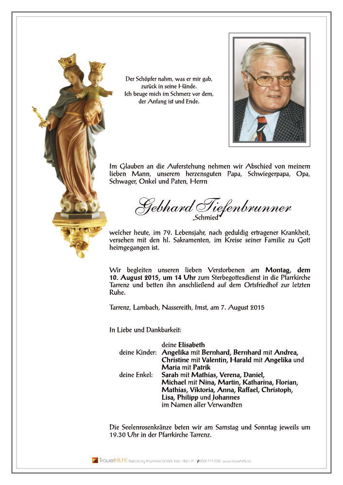 Aufrichtige Anteilnahme09.08.2015 18:01 - Huber Anton