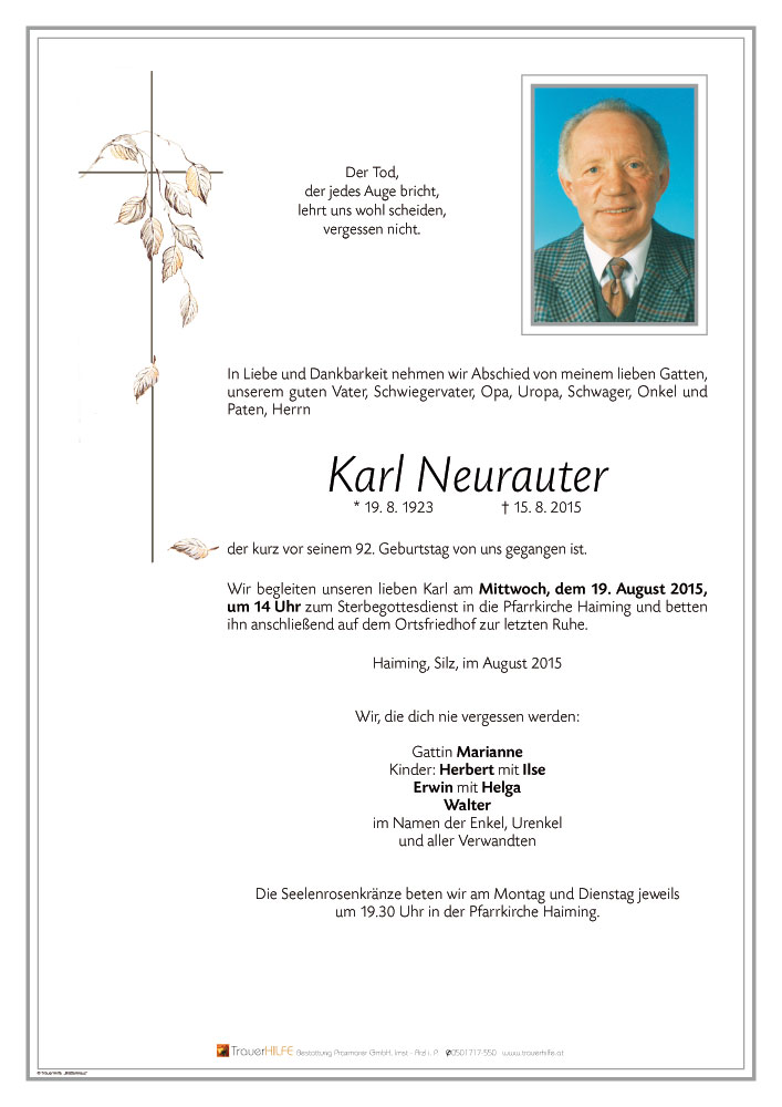 Friedhof Haiming, † 15.08.2015 (91 Jahre)