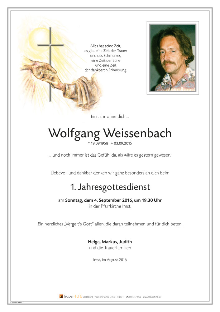Neue Kerze für Wolfgang Weissenbach entzünden.