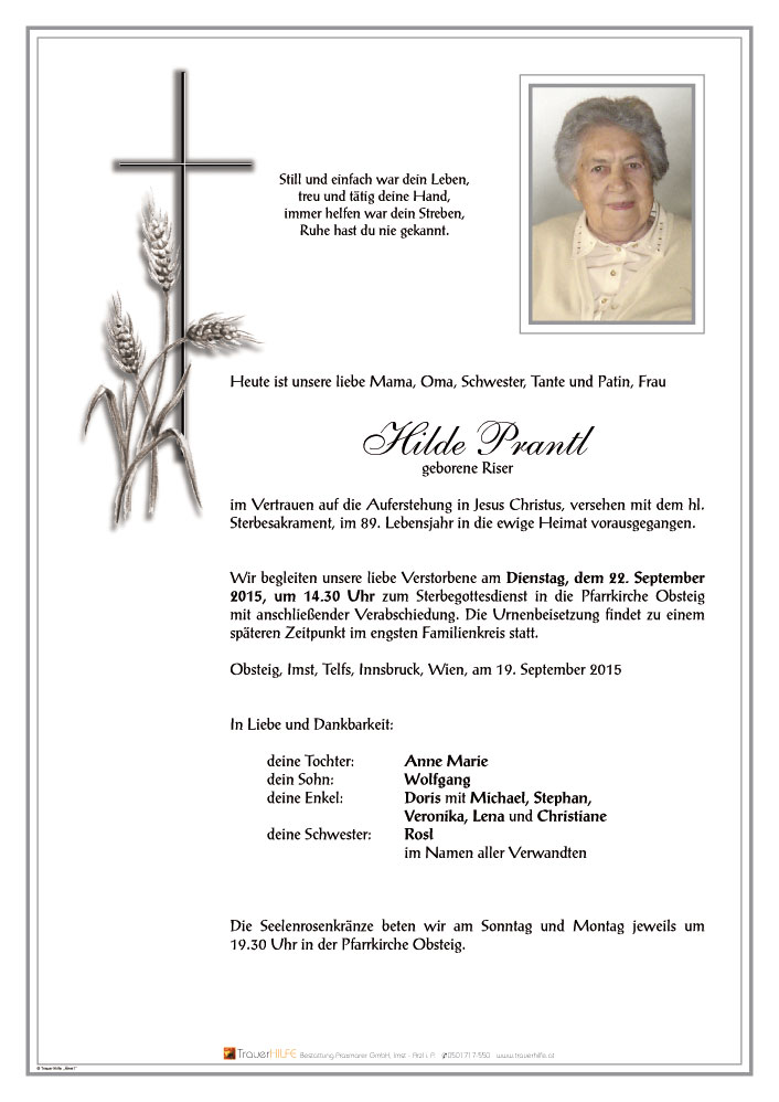 Friedhof Obsteig, † 19.09.2015 (88 Jahre)