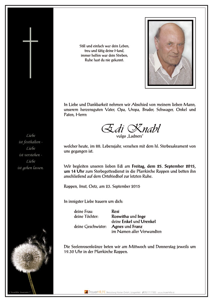 Ich wünsche euch\dir viel Kraft in dieser schweren Zeit. Aufrichtige Anteilnahme entbietet Bettina mit Familie.24.09.2015 09:11 - Betty mit Fam.
