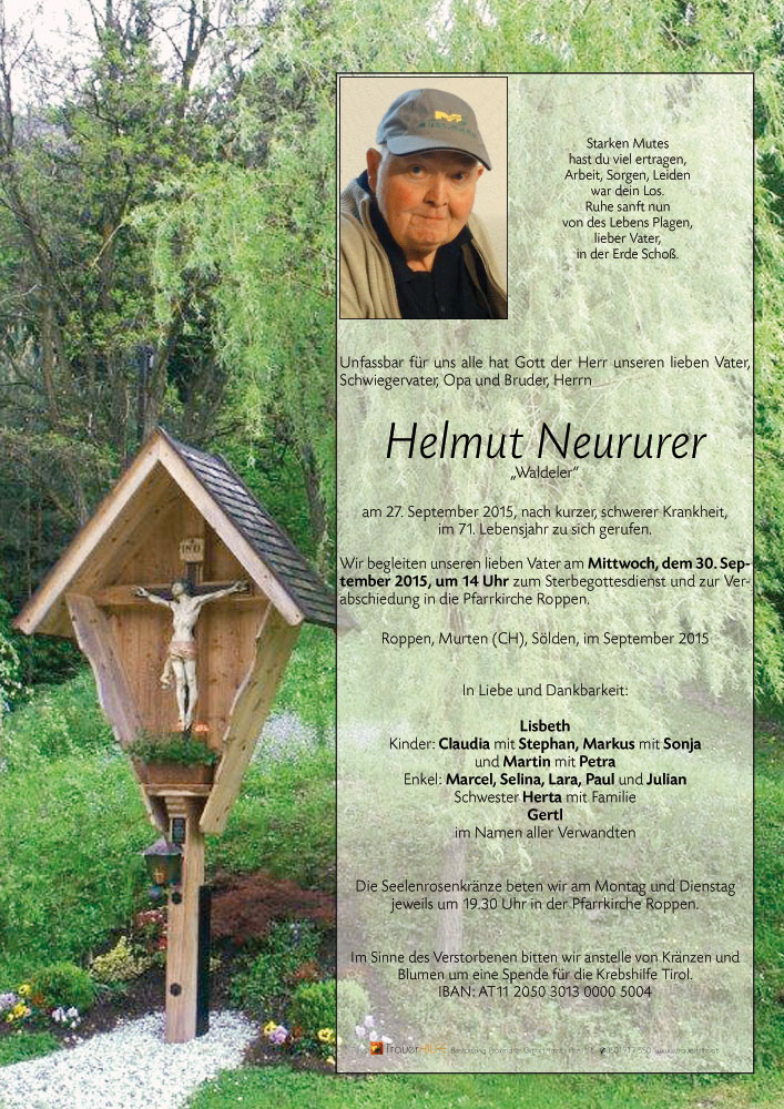 Unser Beileid Fam.Barbara Furtner28.09.2015 11:30 - Fam.Barbara Furtner