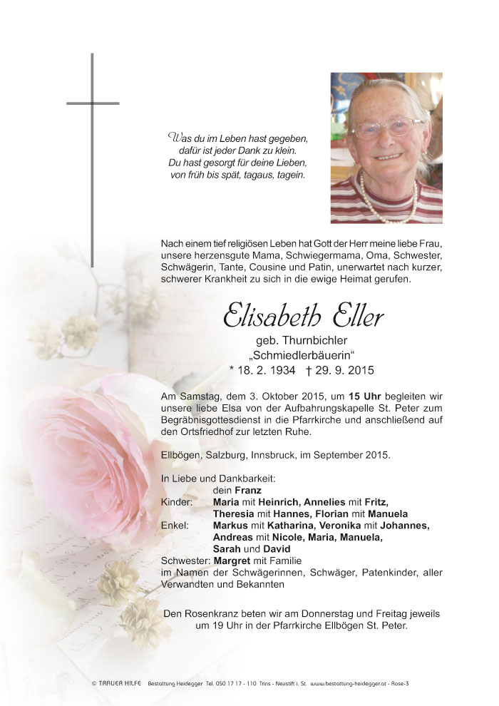 Friedhof Ellbögen, † 29.09.2015 (81 Jahre)