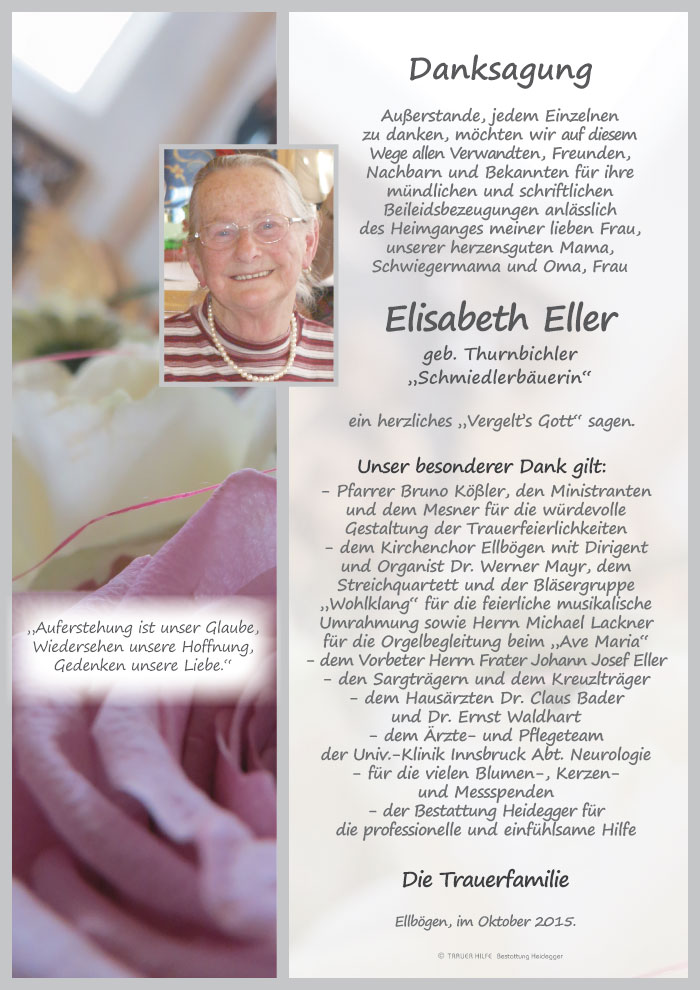 Danke für alles liebe Mama und Oma Elsa