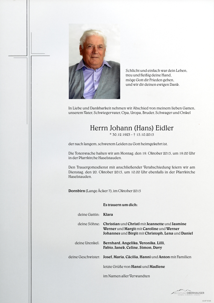 Friedhof Dornbirn-Haselstauden, † 15.10.2015 (91 Jahre)