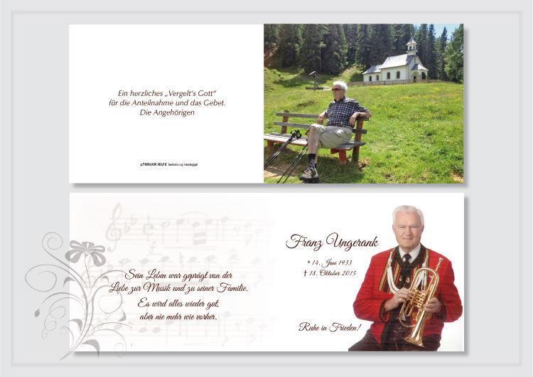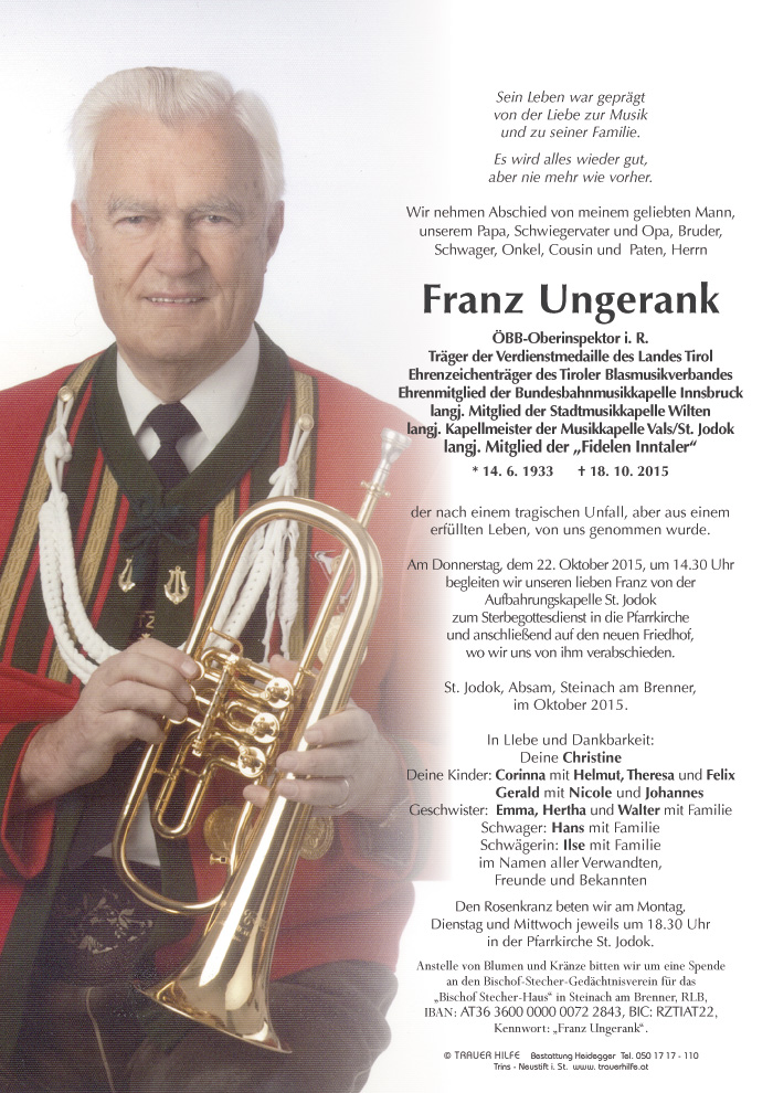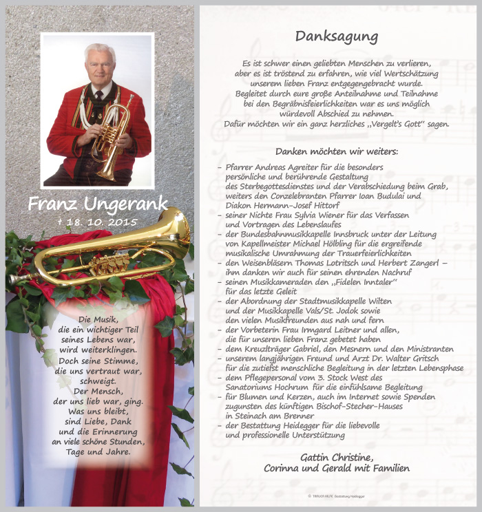 Meine aufrichtige Anteilnahme zum Ableben meines lieben Musikkameraden Franz.
