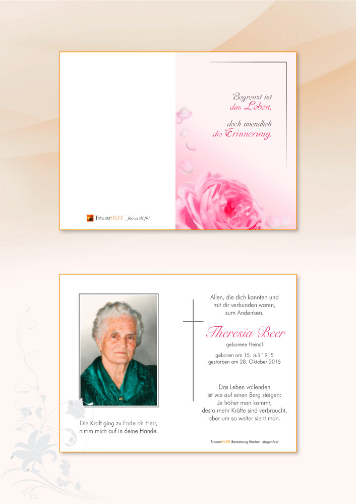 Möge sie nun, in der ewigen Heimat, mit ihrer einzigen und leider viel zu früh verstorbenen Tochter für immer glücklich vereint sein. Ewige Freude und tiefer Frieden soll ihnen beiden beschieden sein.