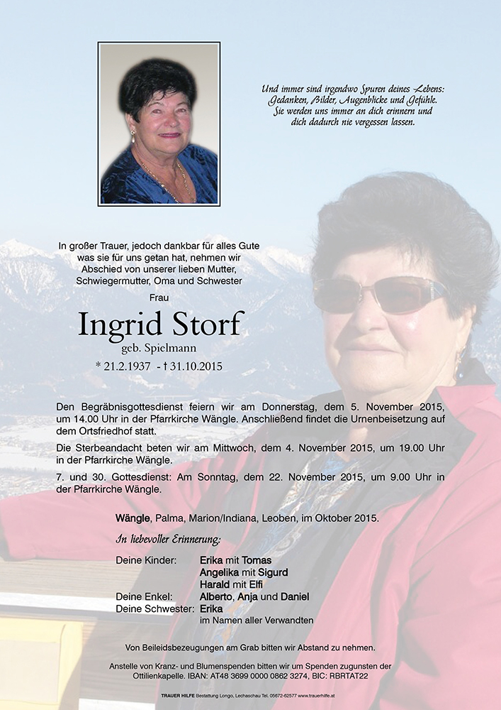 Liebe Erika Angelika und Harald.Unser aufrichtiges Beileid zum ableben eurer lieben Mutter Ingrid uns fehlen die Worte . Margit und Robert04.11.2015 20:26 - Margit und Robert Horntrich