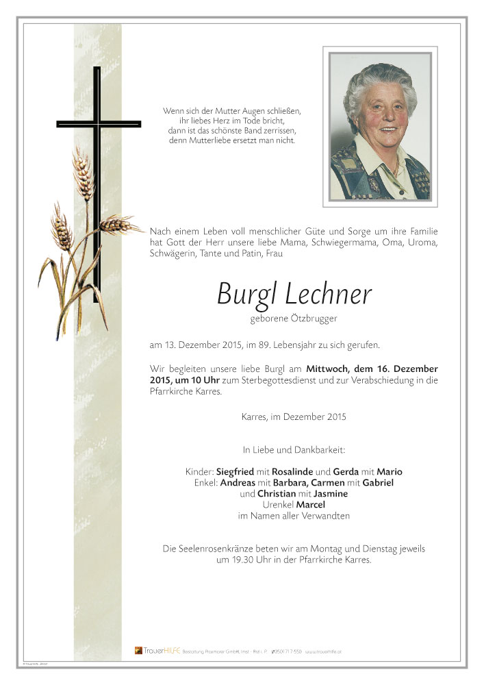 Aufrichtige Anteilnahme entbietet die Belegschaft der Fa. Teerag-Asdag AG, Baubüro Roppen16.12.2015 10:40 - Belegschaft der Fa. Teerag-Asdag AG, Roppen