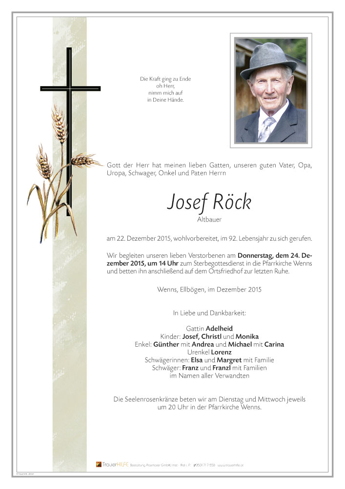 Neue Kerze für Josef Röck entzünden.