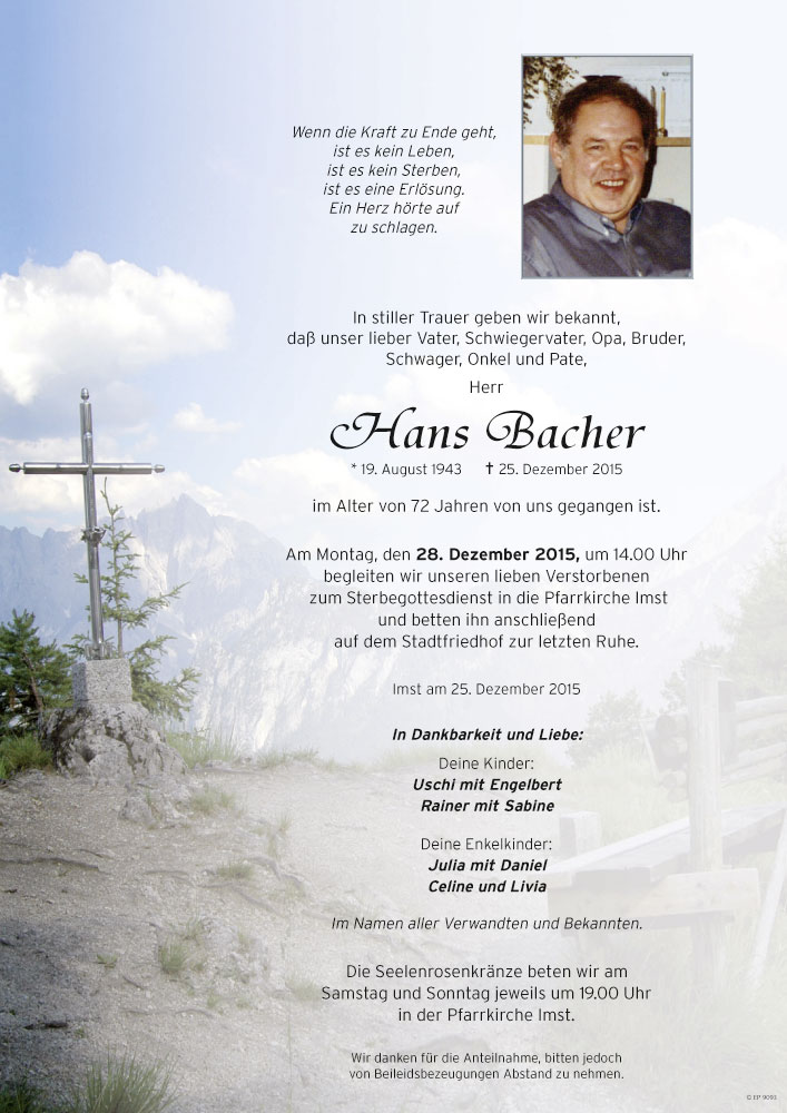 Gottes unendliche Liebe möge euren Papa und Opa empfangen und aufnehmen. Wir wünschen euch in dieser schweren Zeit viel, viel Kraft und Segen. Herzliche Anteilnahme von Berni und Herta mit Familie28.12.2015 09:27 - Herta Moll-Schwetz